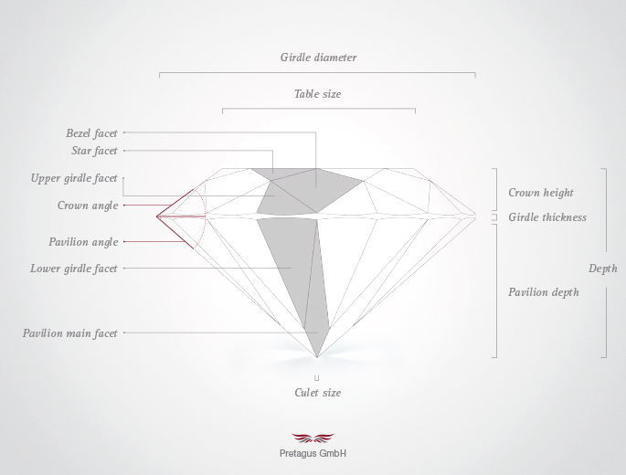 Die Beschreibungen der Eigenschaften eines Diamanten im Zertifikat dienen dazu die Unikate vergleichbar zu machen und eine Preisfindung vorzunehmen. Um Diamanten zu vergleichen die von verschiedenen Laboren zertifiziert wurden, ist es notwendig die jeweiligen Begrifflichkeiten und Graduierungsmaßstäbe der Labore zu kennen. Pretagus verarbeitet die Angaben auf den Zertifikaten der Diamanten und überführt diese in den GIA Standard um einen fundierten Vergleich zu ermöglichen.